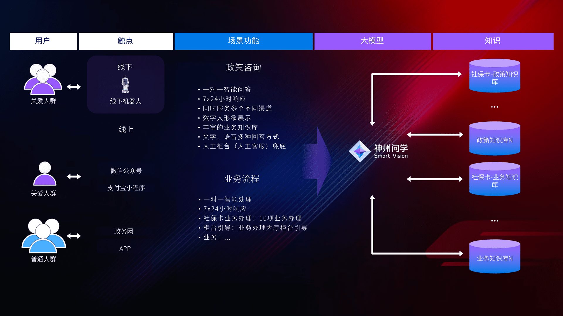 • 线上线下全覆盖:线上提供微信公众号、、、、支付宝小程序、、、、政务网、、、app多种渠道,,与线下机器人形成完整服务体系。。